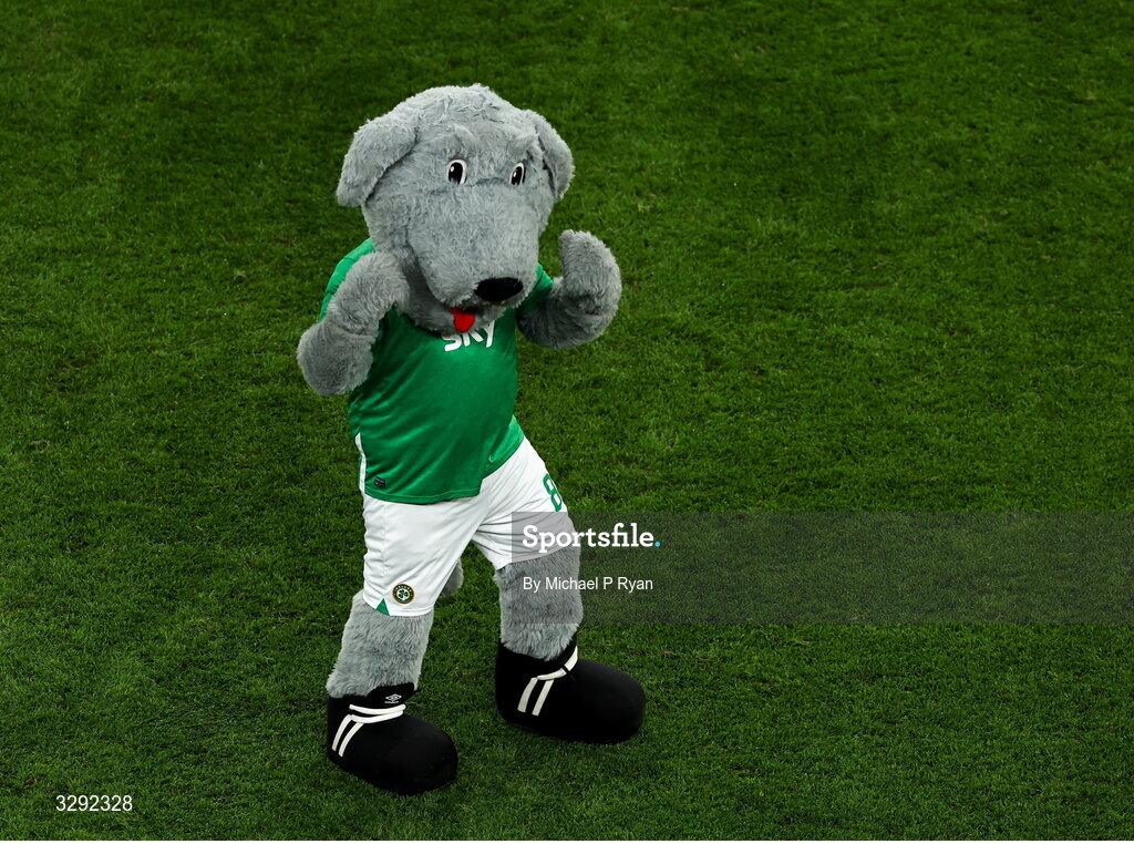 13 November 2025; Republic of Ireland mascot Macúl after the FIFA World Cup 2026 Group F Qualifier match between Republic of Ireland and Portugal at the Aviva Stadium in Dublin. Photo by Michael P Ryan/Sportsfile