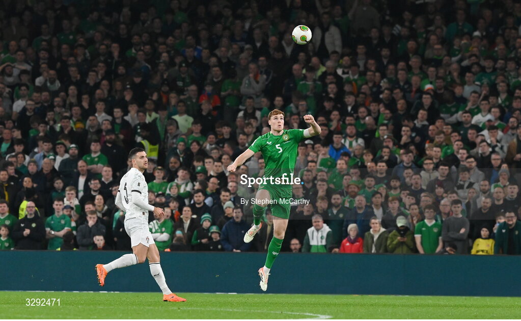 13 November 2025; Jake O'Brien of Republic of Ireland during the FIFA World Cup 2026 Group F Qualifier match between Republic of Ireland and Portugal at the Aviva Stadium in Dublin. Photo by Stephen McCarthy/Sportsfile