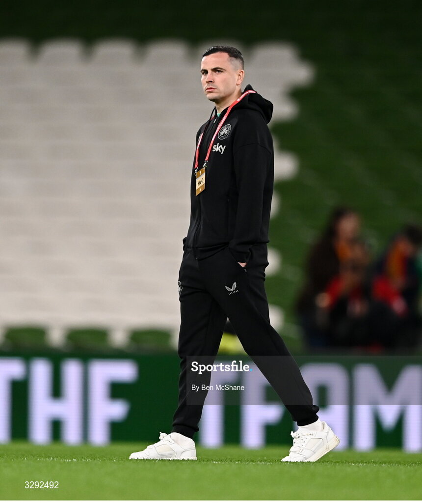 13 November 2025; Josh Cullen of Republic of Ireland before the FIFA World Cup 2026 Group F Qualifier match between Republic of Ireland and Portugal at the Aviva Stadium in Dublin. Photo by Ben McShane/Sportsfile