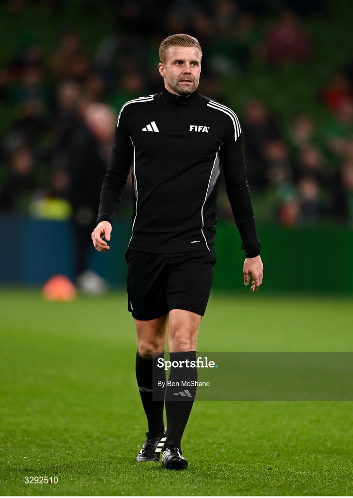 13 November 2025; Referee Glenn Nyber before the FIFA World Cup 2026 Group F Qualifier match between Republic of Ireland and Portugal at the Aviva Stadium in Dublin. Photo by Ben McShane/Sportsfile