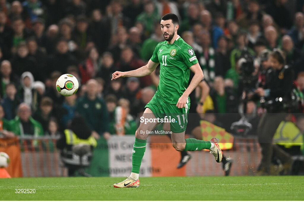 13 November 2025; Finn Azaz of Republic of Ireland during the FIFA World Cup 2026 Group F Qualifier match between Republic of Ireland and Portugal at the Aviva Stadium in Dublin. Photo by Ben McShane/Sportsfile