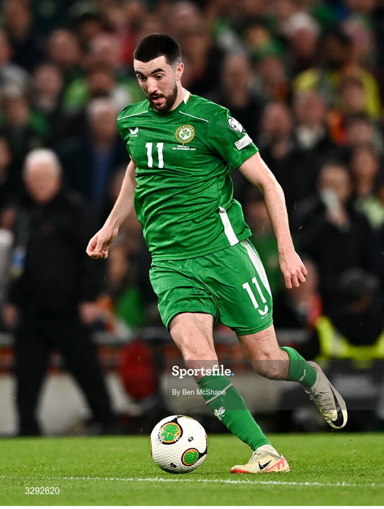 13 November 2025; Finn Azaz of Republic of Ireland during the FIFA World Cup 2026 Group F Qualifier match between Republic of Ireland and Portugal at the Aviva Stadium in Dublin. Photo by Ben McShane/Sportsfile