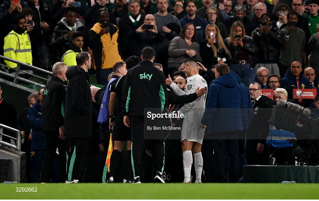 13 November 2025; Cristiano Ronaldo of Portugal gestures toward the Republic of Ireland bench after being sent off during the FIFA World Cup 2026 Group F Qualifier match between Republic of Ireland and Portugal at the Aviva Stadium in Dublin. Photo by Ben McShane/Sportsfile