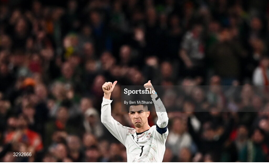 13 November 2025; Cristiano Ronaldo of Portugal reacts after being send off during the FIFA World Cup 2026 Group F Qualifier match between Republic of Ireland and Portugal at the Aviva Stadium in Dublin. Photo by Ben McShane/Sportsfile