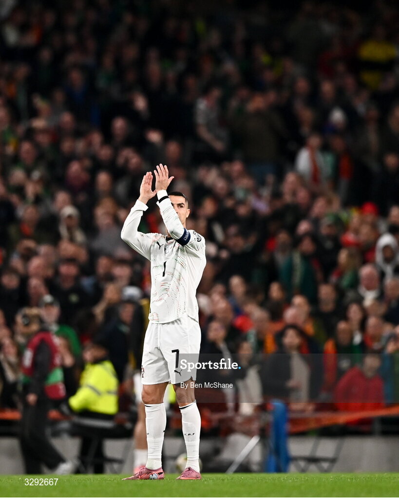 13 November 2025; Cristiano Ronaldo of Portugal reacts after being send off during the FIFA World Cup 2026 Group F Qualifier match between Republic of Ireland and Portugal at the Aviva Stadium in Dublin. Photo by Ben McShane/Sportsfile