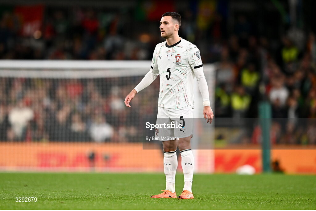 13 November 2025; Diogo Dalot of Portugal during the FIFA World Cup 2026 Group F Qualifier match between Republic of Ireland and Portugal at the Aviva Stadium in Dublin. Photo by Ben McShane/Sportsfile