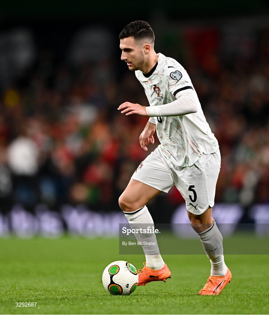 13 November 2025; Diogo Dalot of Portugal during the FIFA World Cup 2026 Group F Qualifier match between Republic of Ireland and Portugal at the Aviva Stadium in Dublin. Photo by Ben McShane/Sportsfile
