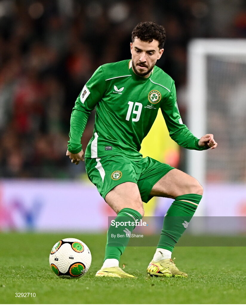 13 November 2025; Mikey Johnston of Republic of Ireland during the FIFA World Cup 2026 Group F Qualifier match between Republic of Ireland and Portugal at the Aviva Stadium in Dublin. Photo by Ben McShane/Sportsfile
