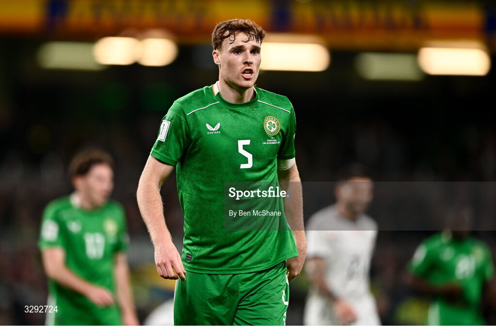13 November 2025; Jake O'Brien of Republic of Ireland during the FIFA World Cup 2026 Group F Qualifier match between Republic of Ireland and Portugal at the Aviva Stadium in Dublin. Photo by Ben McShane/Sportsfile