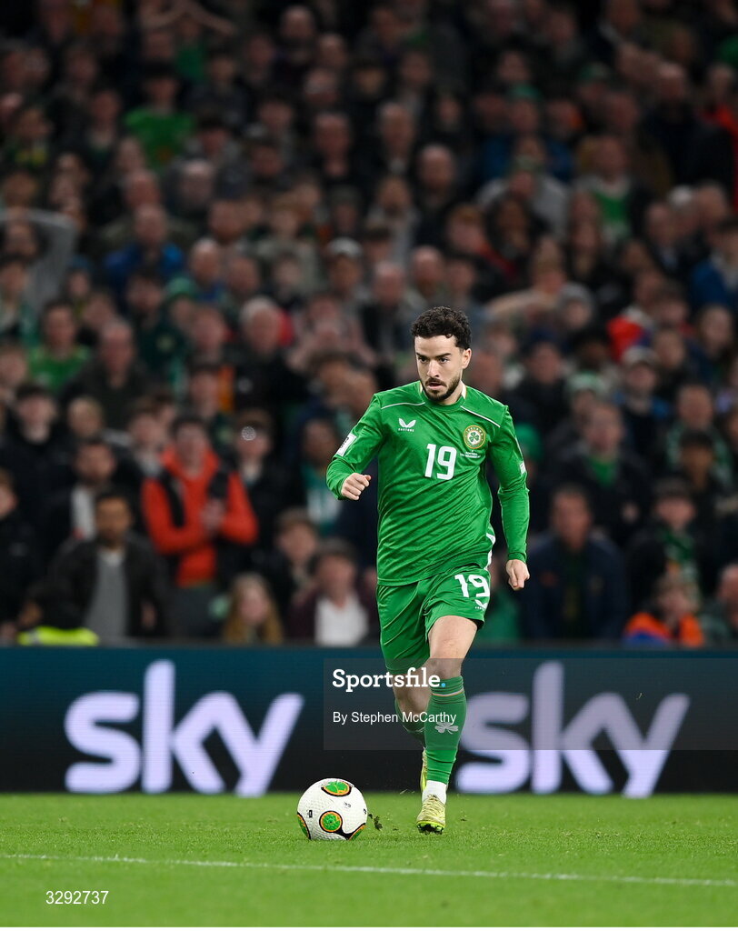 13 November 2025; Mikey Johnston of Republic of Ireland during the FIFA World Cup 2026 Group F Qualifier match between Republic of Ireland and Portugal at the Aviva Stadium in Dublin. Photo by Stephen McCarthy/Sportsfile