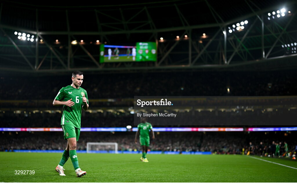 13 November 2025; Josh Cullen of Republic of Ireland during the FIFA World Cup 2026 Group F Qualifier match between Republic of Ireland and Portugal at the Aviva Stadium in Dublin. Photo by Stephen McCarthy/Sportsfile