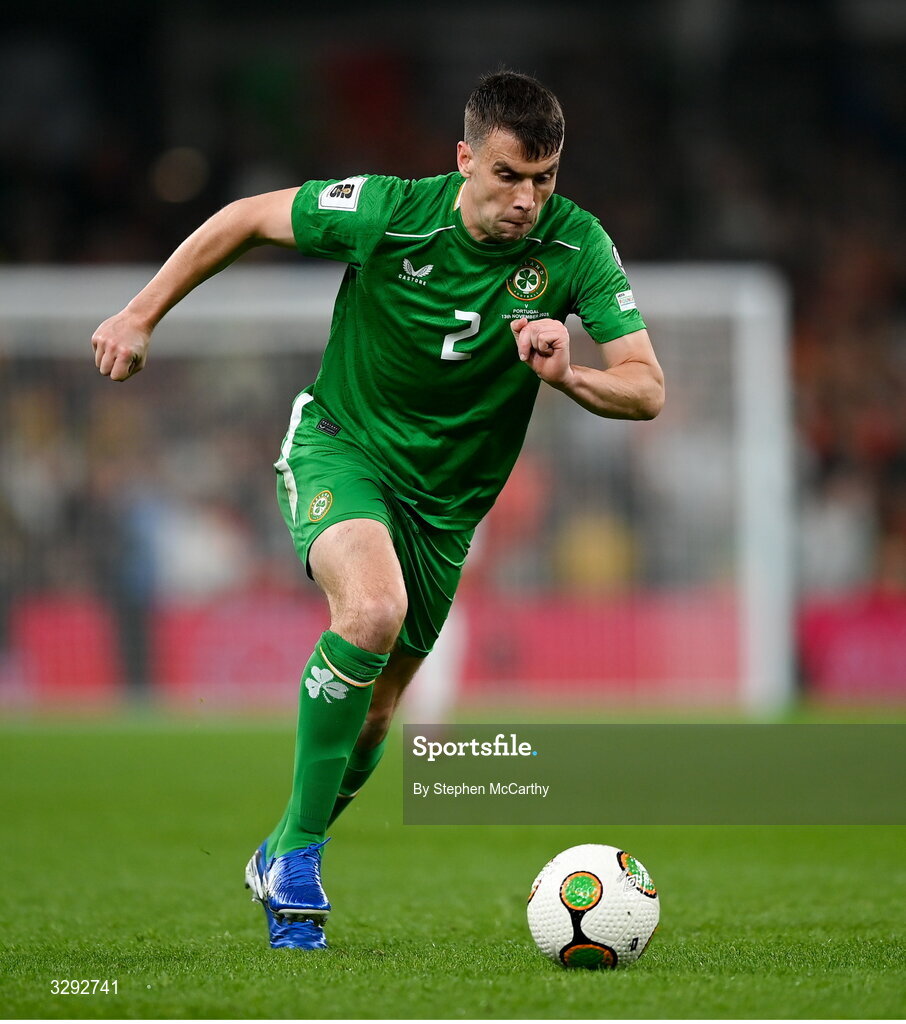 13 November 2025; Seamus Coleman of Republic of Ireland during the FIFA World Cup 2026 Group F Qualifier match between Republic of Ireland and Portugal at the Aviva Stadium in Dublin. Photo by Stephen McCarthy/Sportsfile
