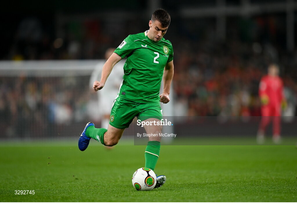 13 November 2025; Seamus Coleman of Republic of Ireland during the FIFA World Cup 2026 Group F Qualifier match between Republic of Ireland and Portugal at the Aviva Stadium in Dublin. Photo by Stephen McCarthy/Sportsfile