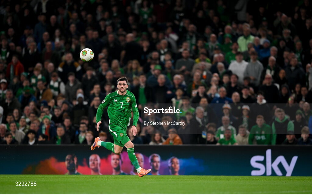 13 November 2025; Troy Parrott of Republic of Ireland during the FIFA World Cup 2026 Group F Qualifier match between Republic of Ireland and Portugal at the Aviva Stadium in Dublin. Photo by Stephen McCarthy/Sportsfile
