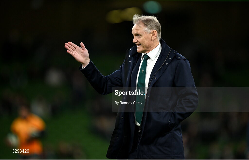15 November 2025; Australia head coach Joe Schmidt before the Quilter Nations Series 2025 match between Ireland and Australia at the Aviva Stadium in Dublin. Photo by Ramsey Cardy/Sportsfile
