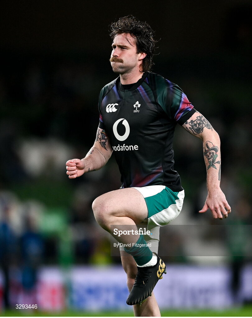 15 November 2025; Mack Hansen of Ireland before the Quilter Nations Series 2025 match between Ireland and Australia at the Aviva Stadium in Dublin. Photo by David Fitzgerald/Sportsfile