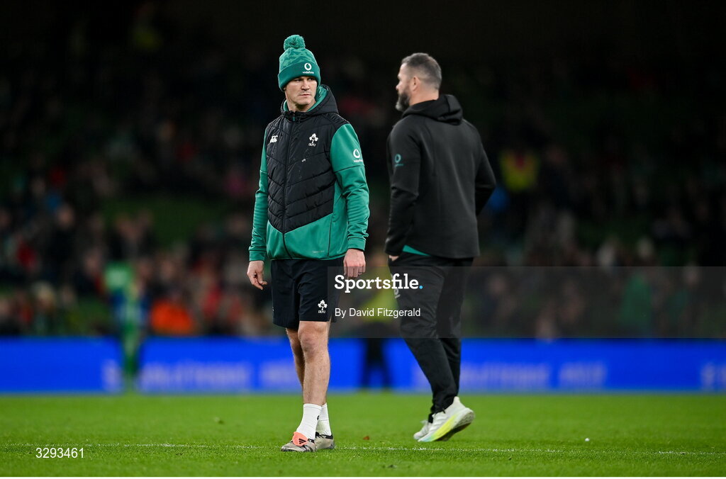 15 November 2025; Ireland assistant coach Jonathan Sexton and head coach Andy Farrell, right, before the Quilter Nations Series 2025 match between Ireland and Australia at the Aviva Stadium in Dublin. Photo by David Fitzgerald/Sportsfile