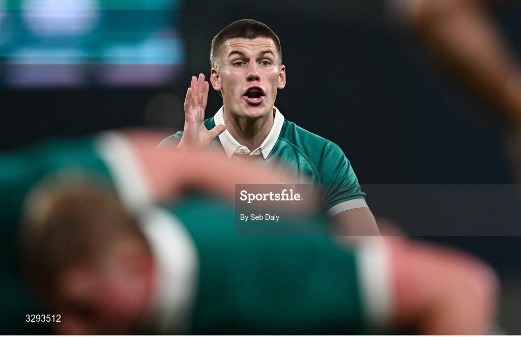 15 November 2025; Sam Prendergast of Ireland during the Quilter Nations Series 2025 match between Ireland and Australia at the Aviva Stadium in Dublin. Photo by Seb Daly/Sportsfile