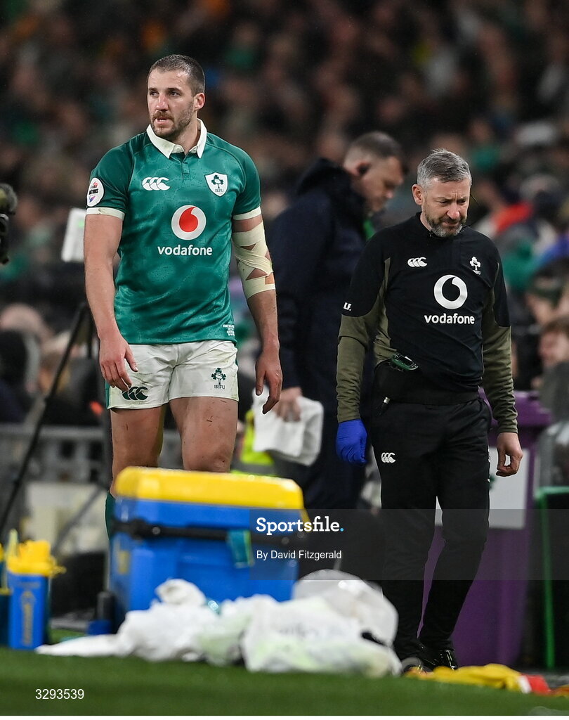 15 November 2025; Stuart McCloskey of Ireland leaves the field with an injury during the Quilter Nations Series 2025 match between Ireland and Australia at the Aviva Stadium in Dublin. Photo by David Fitzgerald/Sportsfile