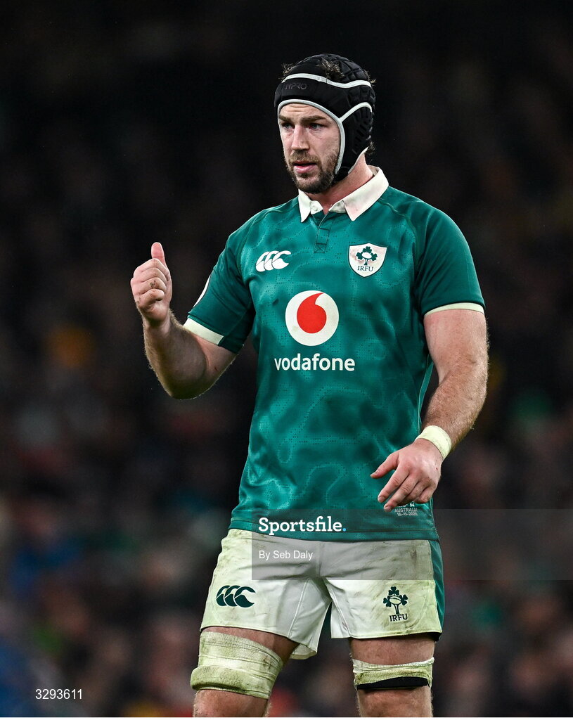 15 November 2025; Caelan Doris of Ireland during the Quilter Nations Series 2025 match between Ireland and Australia at the Aviva Stadium in Dublin. Photo by Seb Daly/Sportsfile