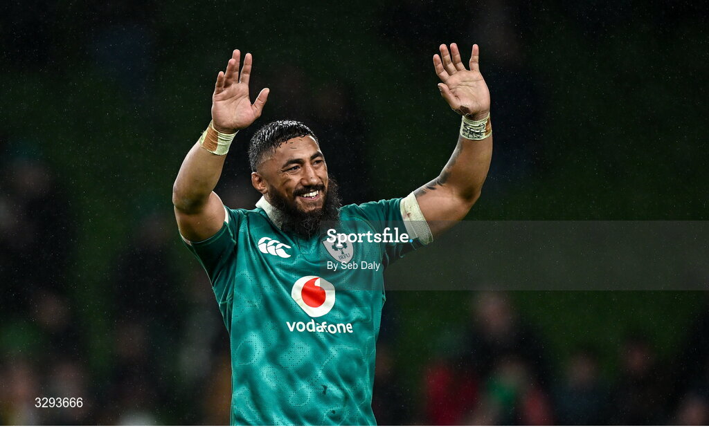15 November 2025; Bundee Aki of Ireland after the Quilter Nations Series 2025 match between Ireland and Australia at the Aviva Stadium in Dublin. Photo by Seb Daly/Sportsfile