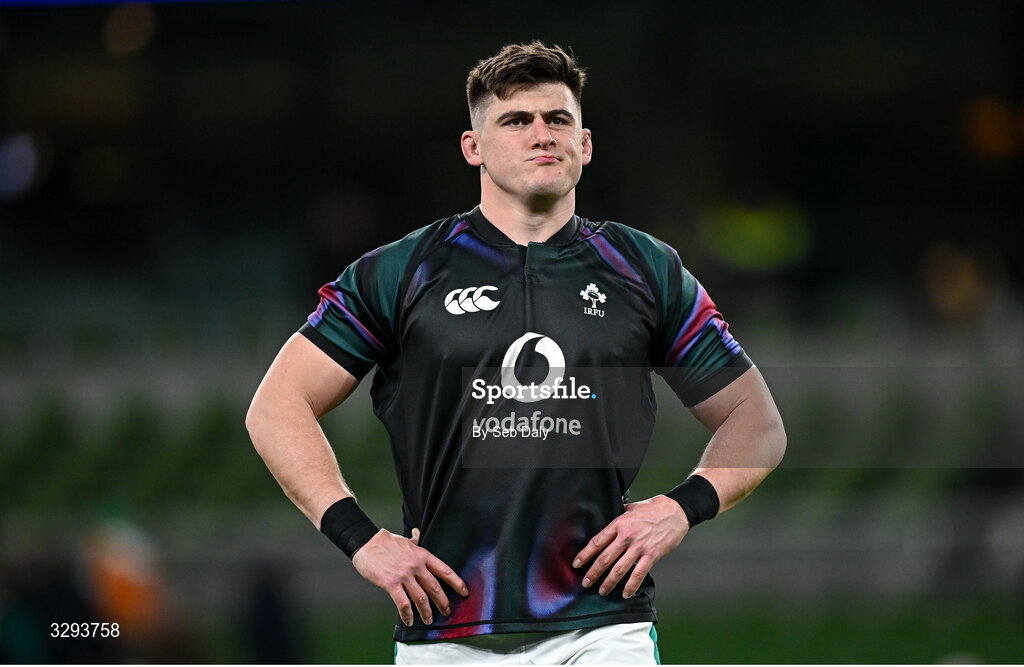 15 November 2025; Dan Sheehan of Ireland before the Quilter Nations Series 2025 match between Ireland and Australia at the Aviva Stadium in Dublin. Photo by Seb Daly/Sportsfile