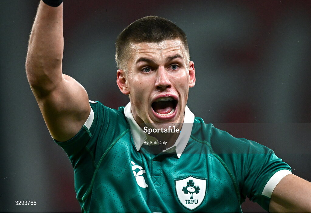 15 November 2025; Sam Prendergast of Ireland during the Quilter Nations Series 2025 match between Ireland and Australia at the Aviva Stadium in Dublin. Photo by Seb Daly/Sportsfile