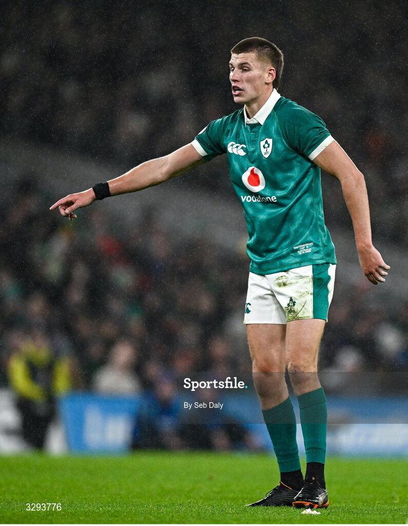 15 November 2025; Sam Prendergast of Ireland during the Quilter Nations Series 2025 match between Ireland and Australia at the Aviva Stadium in Dublin. Photo by Seb Daly/Sportsfile