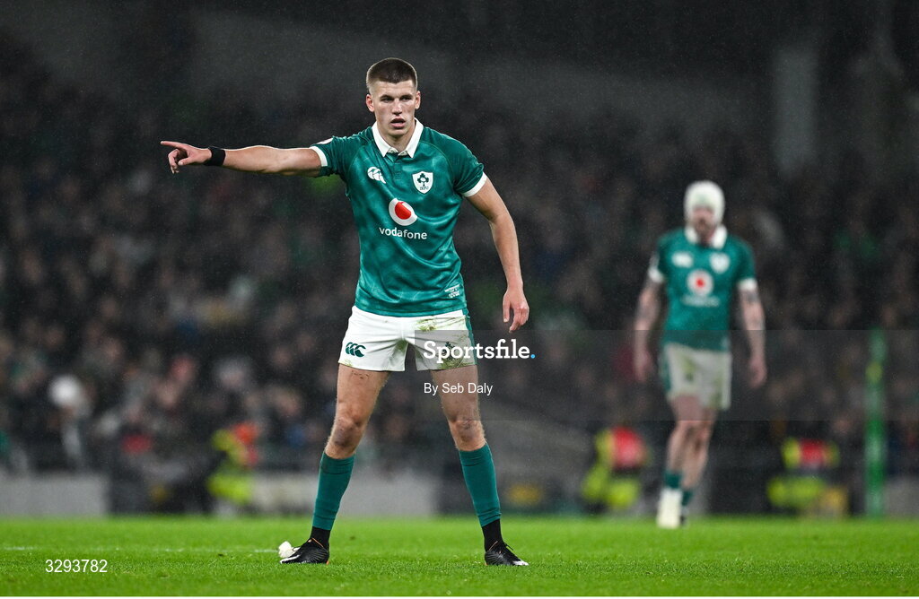 15 November 2025; Sam Prendergast of Ireland during the Quilter Nations Series 2025 match between Ireland and Australia at the Aviva Stadium in Dublin. Photo by Seb Daly/Sportsfile