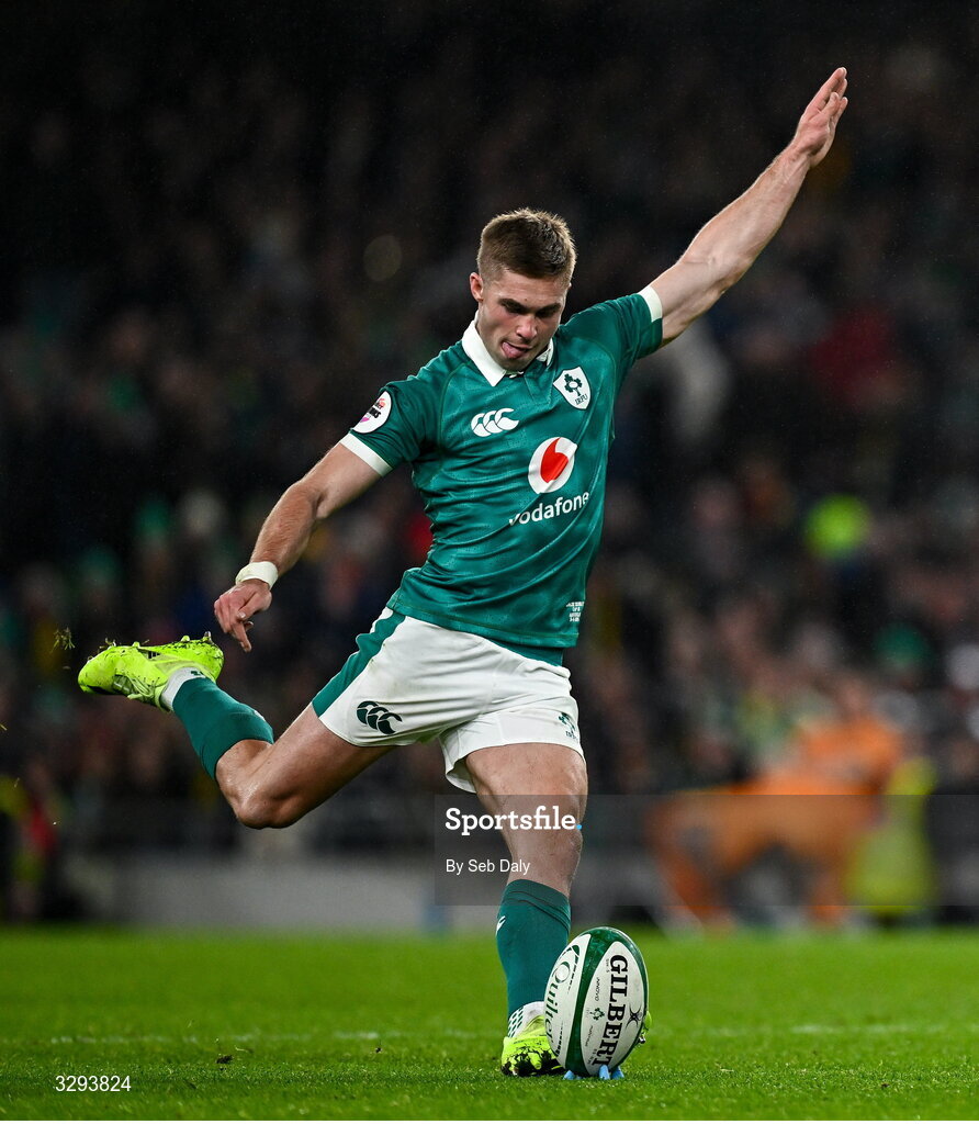 15 November 2025; Jack Crowley of Ireland during the Quilter Nations Series 2025 match between Ireland and Australia at the Aviva Stadium in Dublin. Photo by Seb Daly/Sportsfile