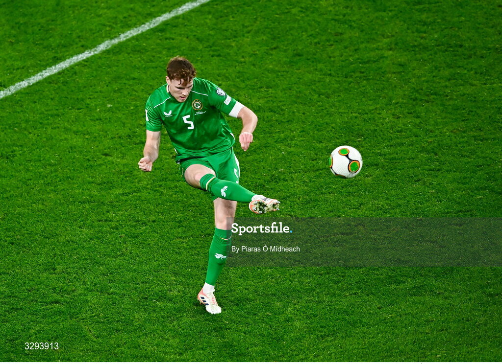 13 November 2025; Jake O'Brien of Republic of Ireland during the FIFA World Cup 2026 Group F Qualifier match between Republic of Ireland and Portugal at the Aviva Stadium in Dublin. Photo by Piaras Ó Mídheach/Sportsfile