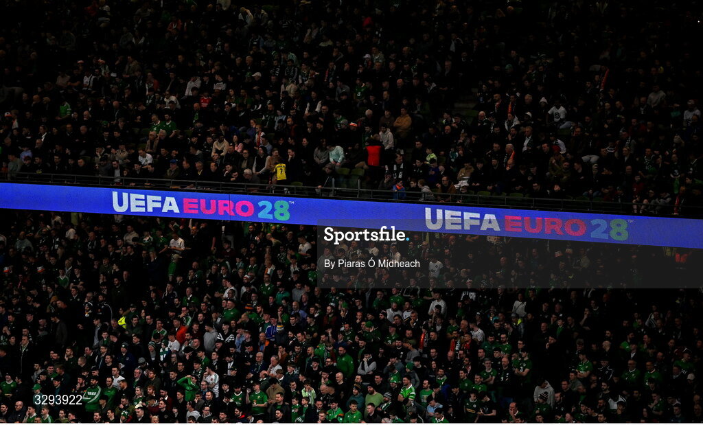 13 November 2025; Branding for UEFA Euro 2028 during the FIFA World Cup 2026 Group F Qualifier match between Republic of Ireland and Portugal at the Aviva Stadium in Dublin. Photo by Piaras Ó Mídheach/Sportsfile
