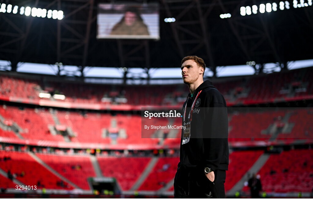 16 November 2025; Jake O'Brien of Republic of Ireland before the FIFA World Cup 2026 Group F Qualifier match between Hungary and Republic of Ireland at Puskás Aréna in Budapest, Hungary. Photo by Stephen McCarthy/Sportsfile