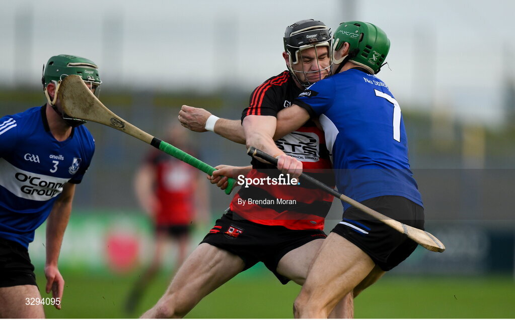 16 November 2025; Kevin Mahony of Ballygunner is tackled by Craig Leahy of Sarsfields during the AIB Munster GAA Hurling Senior Club Championship semi-final match between Ballygunner and Sarsfields at Azzurri Walsh Park in Waterford. Photo by Brendan Moran/Sportsfile