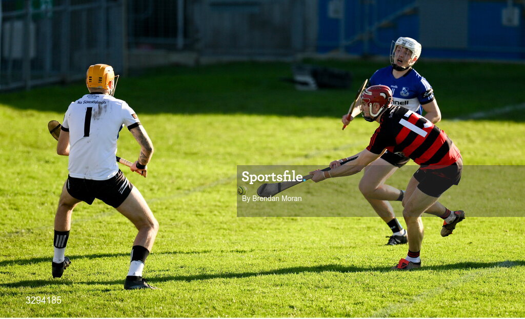 16 November 2025; Patrick Fitzgerald of Ballygunner scores his side's third goal past Sarsfields goalkeeper Ben Graham during the AIB Munster GAA Hurling Senior Club Championship semi-final match between Ballygunner and Sarsfields at Azzurri Walsh Park in Waterford. Photo by Brendan Moran/Sportsfile