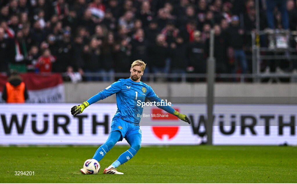 16 November 2025; Republic of Ireland goalkeeper Caoimhin Kelleher during the FIFA World Cup 2026 Group F Qualifier match between Hungary and Republic of Ireland at Puskás Aréna in Budapest, Hungary. Photo by Ben McShane/Sportsfile