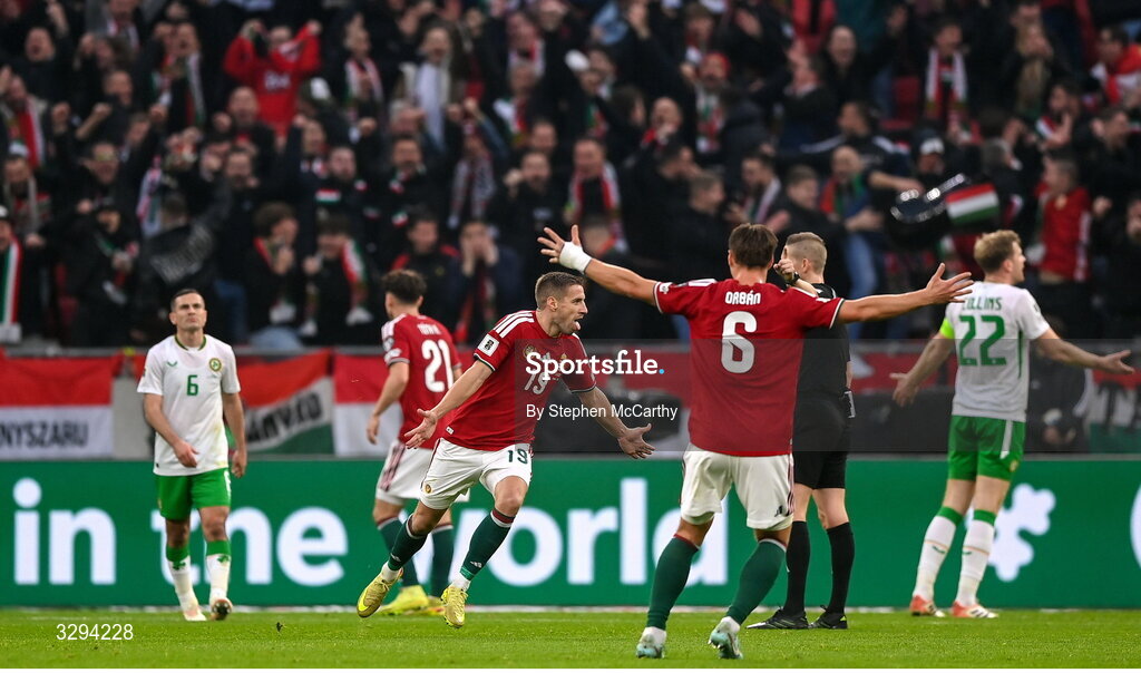 16 November 2025; Barnabás Varga of Hungary celebrates after scoring his side's second goal during the FIFA World Cup 2026 Group F Qualifier match between Hungary and Republic of Ireland at Puskás Aréna in Budapest, Hungary. Photo by Stephen McCarthy/Sportsfile