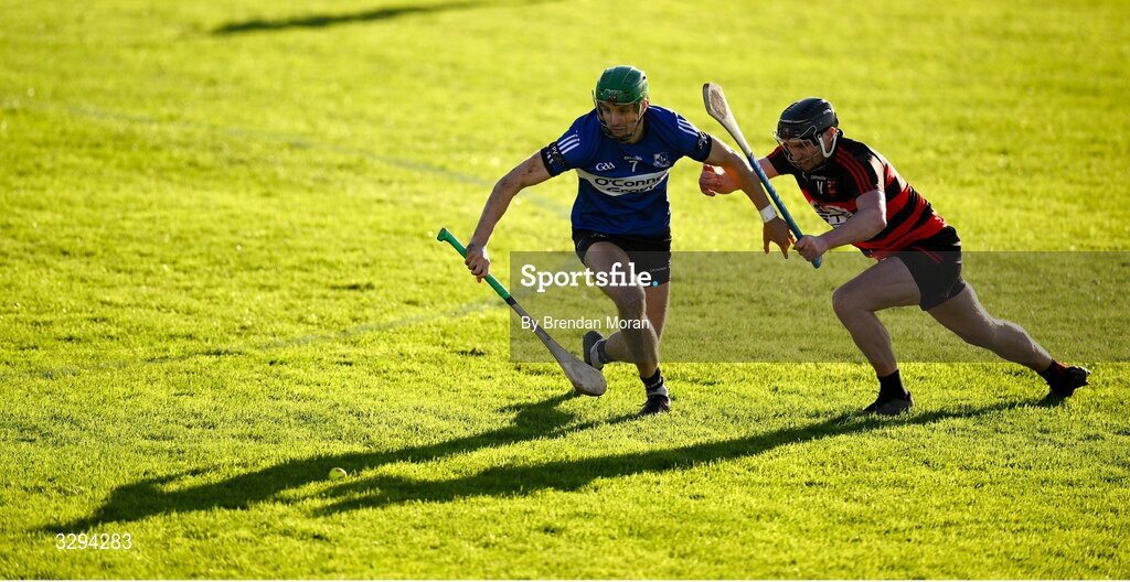 16 November 2025; Craig Leahy of Sarsfields holds off Pauric Mahony of Ballygunner during the AIB Munster GAA Hurling Senior Club Championship semi-final match between Ballygunner and Sarsfields at Azzurri Walsh Park in Waterford. Photo by Brendan Moran/Sportsfile