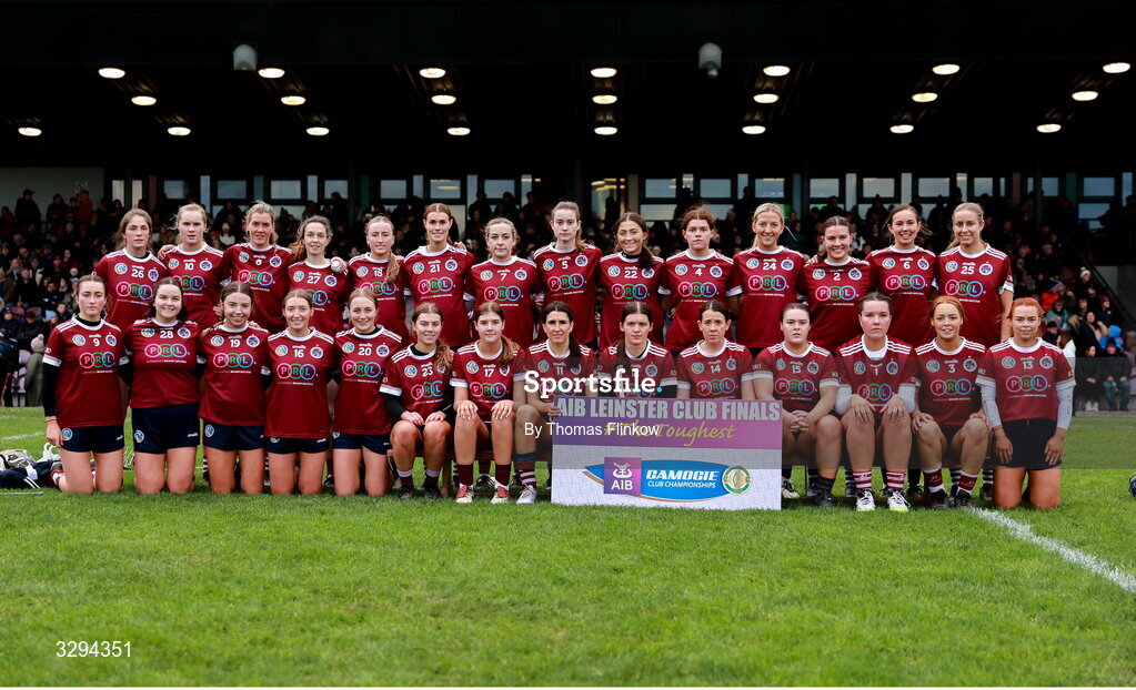 16 November 2025; The Dicksboro team before the AIB Leinster Camogie Senior Club Championship final match between Dicksboro and Oulart-The Ballagh at SETU in Carlow. Photo by Thomas Flinkow/Sportsfile
