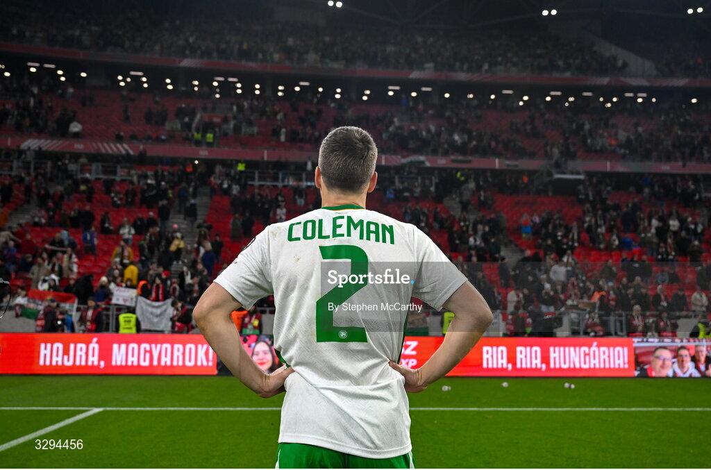 16 November 2025; Seamus Coleman of Republic of Ireland after the FIFA World Cup 2026 Group F Qualifier match between Hungary and Republic of Ireland at Puskás Aréna in Budapest, Hungary. Photo by Stephen McCarthy/Sportsfile