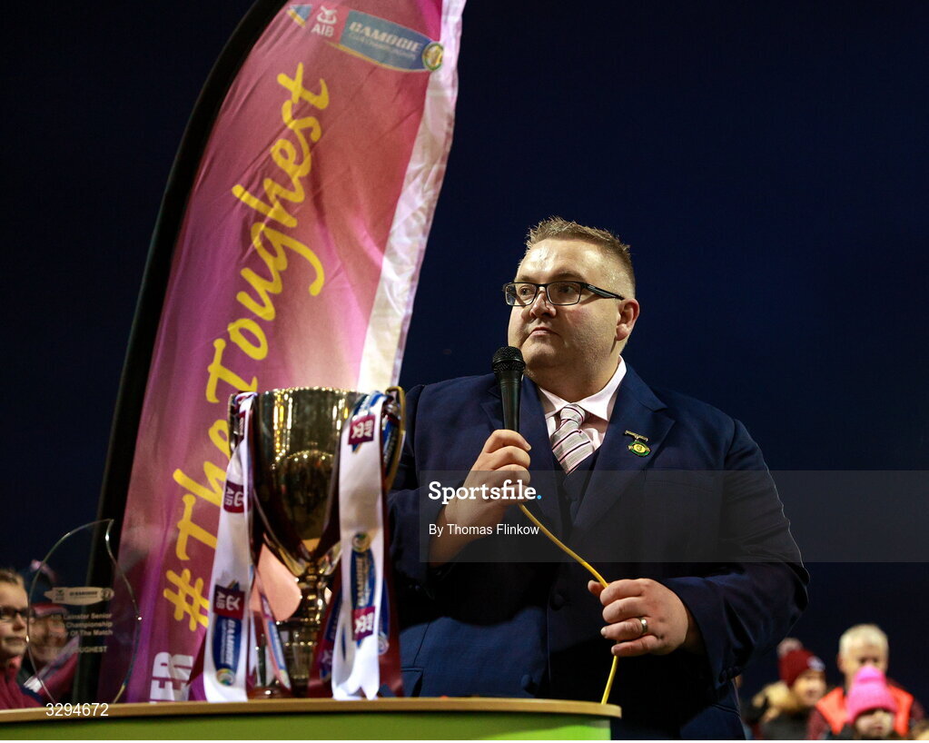 16 November 2025; Chairperson of the Leinster camogie association Martin Quilty after the AIB Leinster Camogie Senior Club Championship final match between Dicksboro and Oulart-The Ballagh at SETU in Carlow. Photo by Thomas Flinkow/Sportsfile