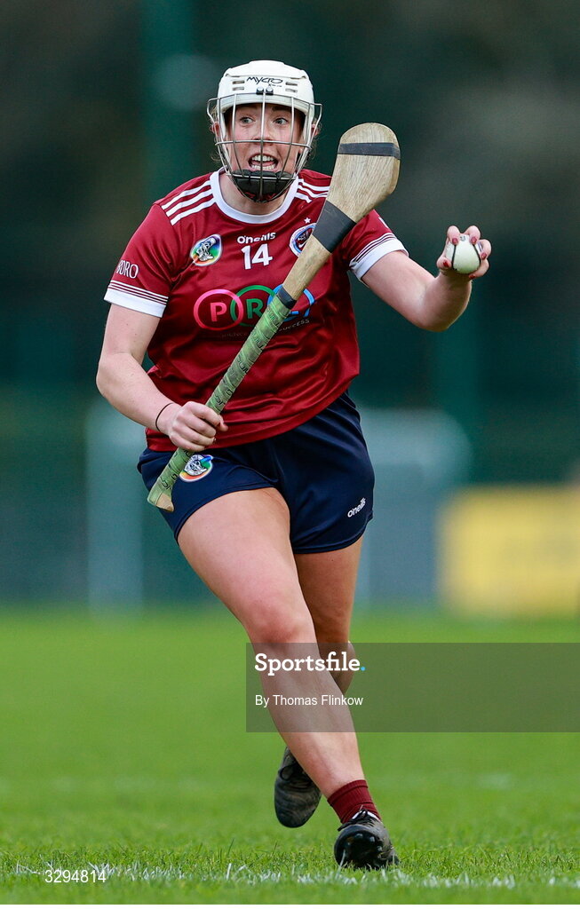 16 November 2025; Orla Hanrick of Dicksboro during the AIB Leinster Camogie Senior Club Championship final match between Dicksboro and Oulart-The Ballagh at SETU in Carlow. Photo by Thomas Flinkow/Sportsfile