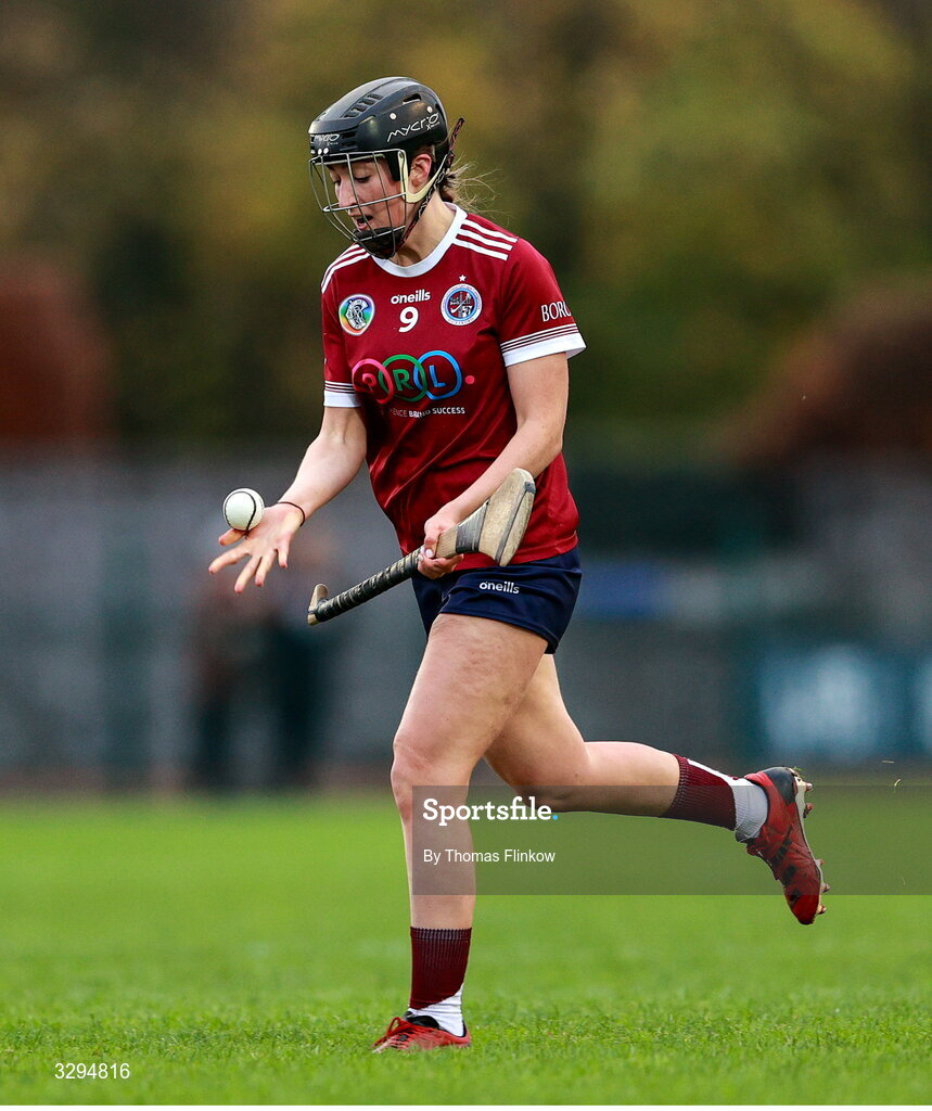 16 November 2025; Aobha O'Gorman of Dicksboro during the AIB Leinster Camogie Senior Club Championship final match between Dicksboro and Oulart-The Ballagh at SETU in Carlow. Photo by Thomas Flinkow/Sportsfile