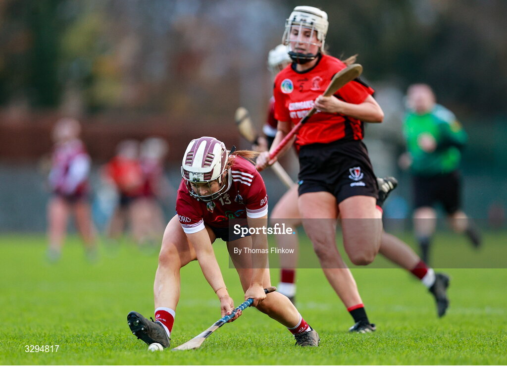 16 November 2025; Jenny Clifford of Dicksboro during the AIB Leinster Camogie Senior Club Championship final match between Dicksboro and Oulart-The Ballagh at SETU in Carlow. Photo by Thomas Flinkow/Sportsfile