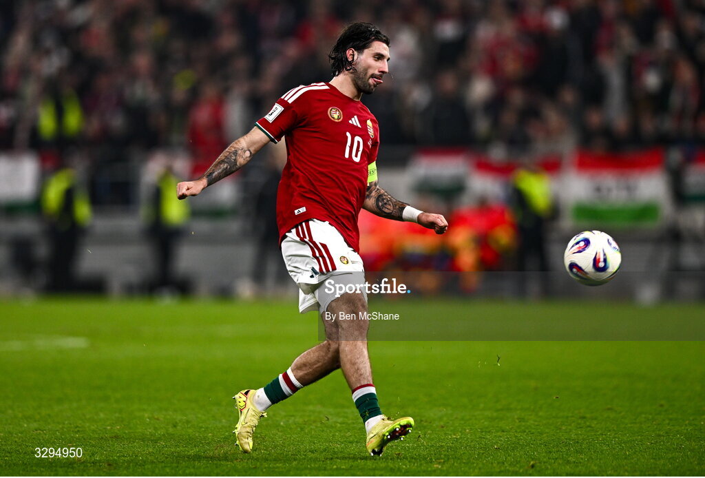 16 November 2025; Dominik Szoboszlai of Hungary during the FIFA World Cup 2026 Group F Qualifier match between Hungary and Republic of Ireland at Puskás Aréna in Budapest, Hungary. Photo by Ben McShane/Sportsfile