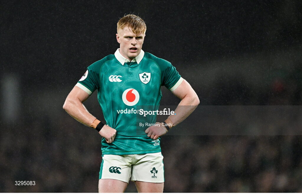 15 November 2025; Tommy O’Brien of Ireland during the Quilter Nations Series 2025 match between Ireland and Australia at the Aviva Stadium in Dublin. Photo by Ramsey Cardy/Sportsfile