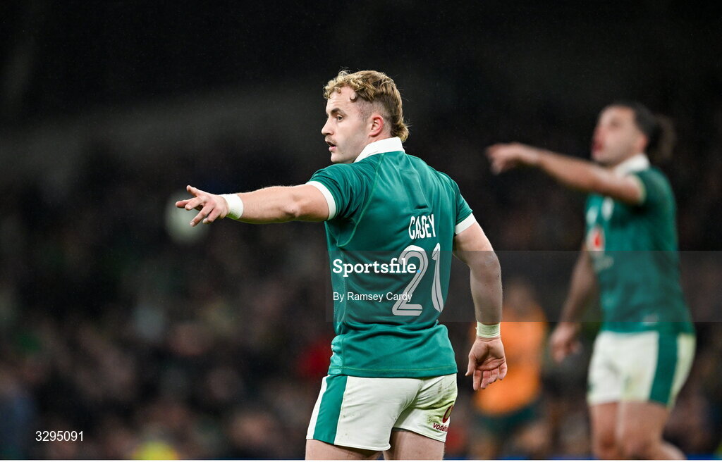 15 November 2025; Craig Casey of Ireland during the Quilter Nations Series 2025 match between Ireland and Australia at the Aviva Stadium in Dublin. Photo by Ramsey Cardy/Sportsfile