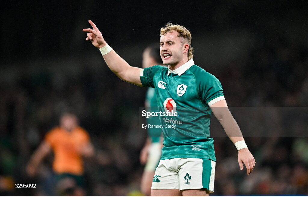 15 November 2025; Craig Casey of Ireland during the Quilter Nations Series 2025 match between Ireland and Australia at the Aviva Stadium in Dublin. Photo by Ramsey Cardy/Sportsfile