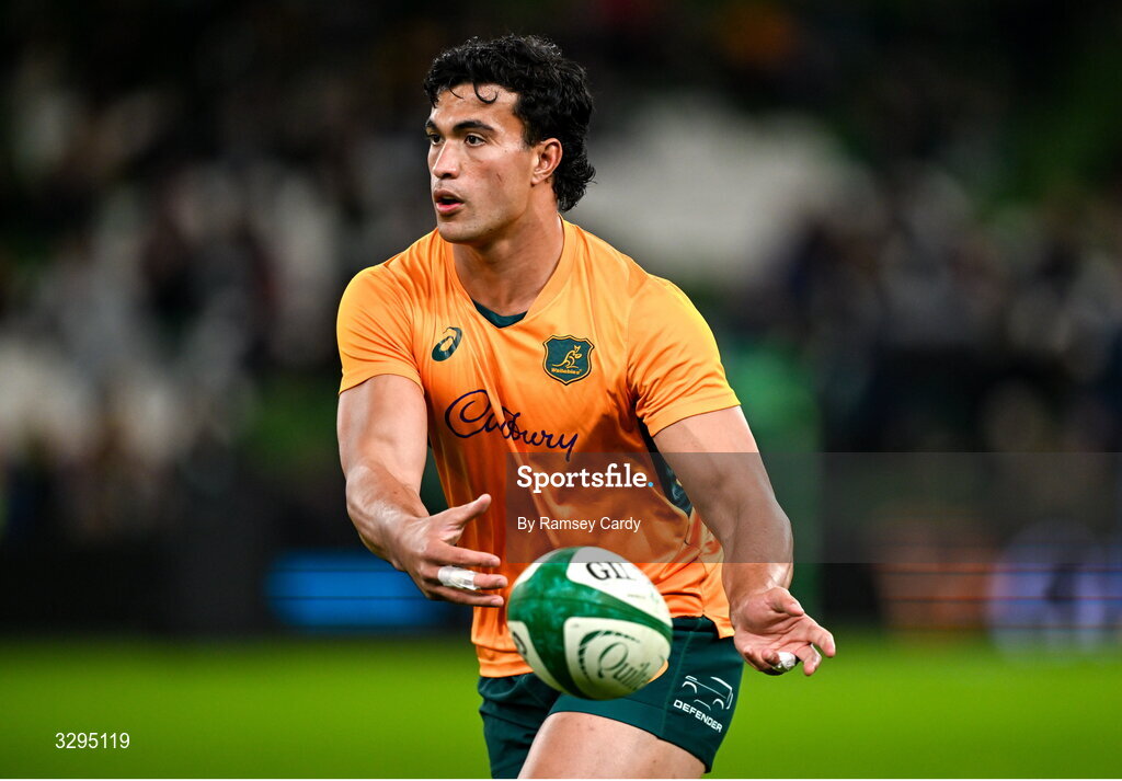 15 November 2025; Joseph-Aukuso Suaalii of Australia before the Quilter Nations Series 2025 match between Ireland and Australia at the Aviva Stadium in Dublin. Photo by Ramsey Cardy/Sportsfile