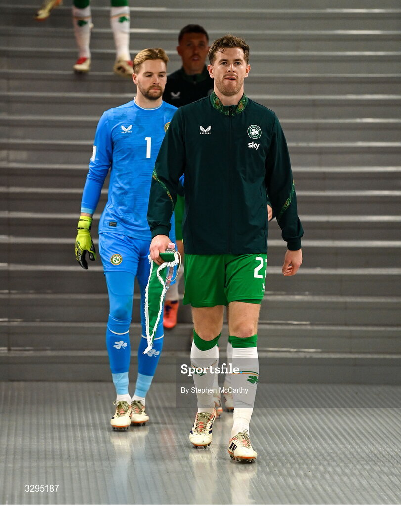 16 November 2025; Nathan Collins of Republic of Ireland before the FIFA World Cup 2026 Group F Qualifier match between Hungary and Republic of Ireland at Puskás Aréna in Budapest, Hungary. Photo by Stephen McCarthy/Sportsfile